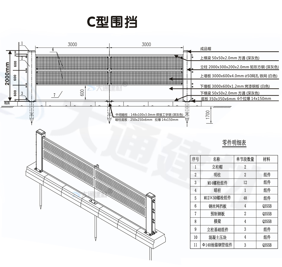 深圳市大通建生產(chǎn)的C型圍擋采用鋼結(jié)構(gòu)設(shè)計,更安全穩(wěn)固,抗風(fēng)能力更強(qiáng),大多數(shù)能抵抗10級以上的風(fēng)力,適用于市政建設(shè)施工、房地產(chǎn)項(xiàng)目施工、高架橋施工、地地鐵項(xiàng)目施工、路橋維護(hù)施工、隧道施工、立面改造施工、廠房隔斷施工等各種項(xiàng)目工程,一款好的圍擋能為工地施工安全保駕護(hù)航。大通為各項(xiàng)目工程單位提供圍擋生產(chǎn)定制、施工安裝等包工包料的服務(wù),了解更多“大通C型圍擋”詳情 請致電13826562448 梁先生