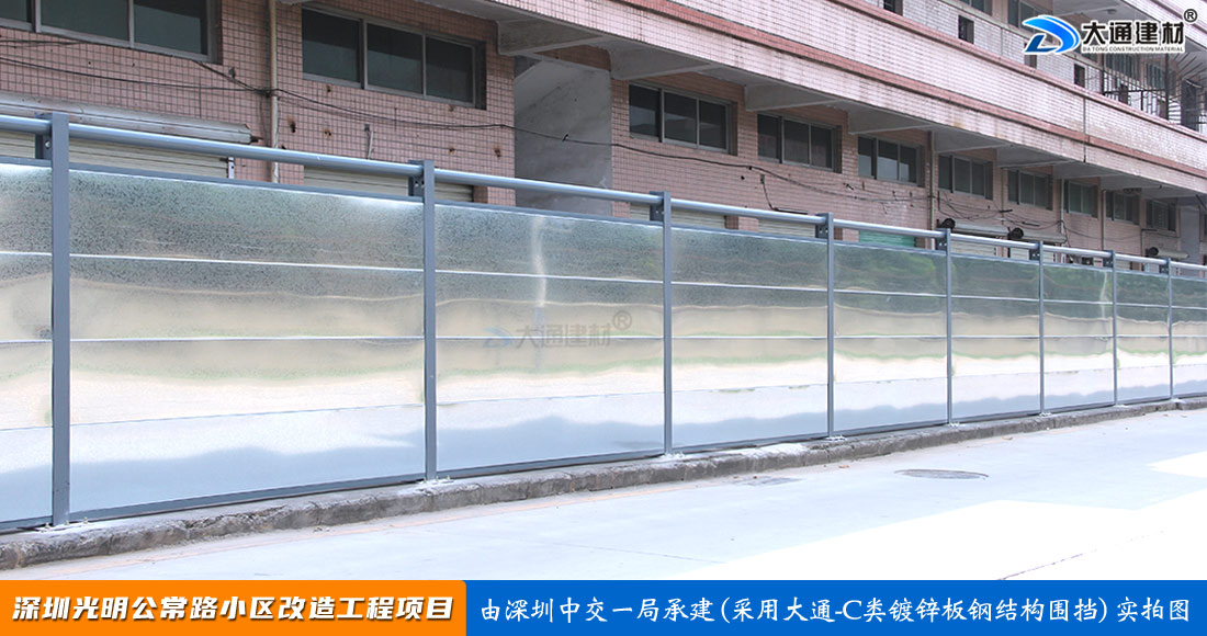 大通建材C類裝配式鋼圍擋鍍鋅款,拆裝便利、快速拼裝、結構牢固、安全性高,已廣泛應用于深圳、東莞、惠州、廣州、汕頭等地區的工程施工項目中